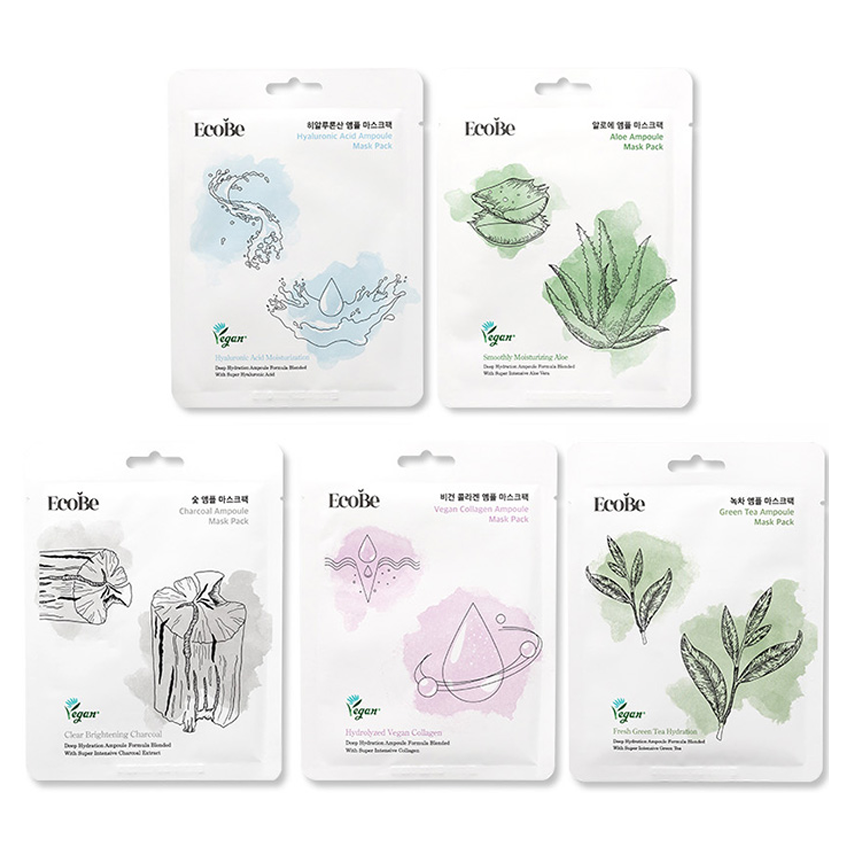 Ecobe Vegane Ampullen-Gesichtsmaske, Sortenmix (5er-Set)