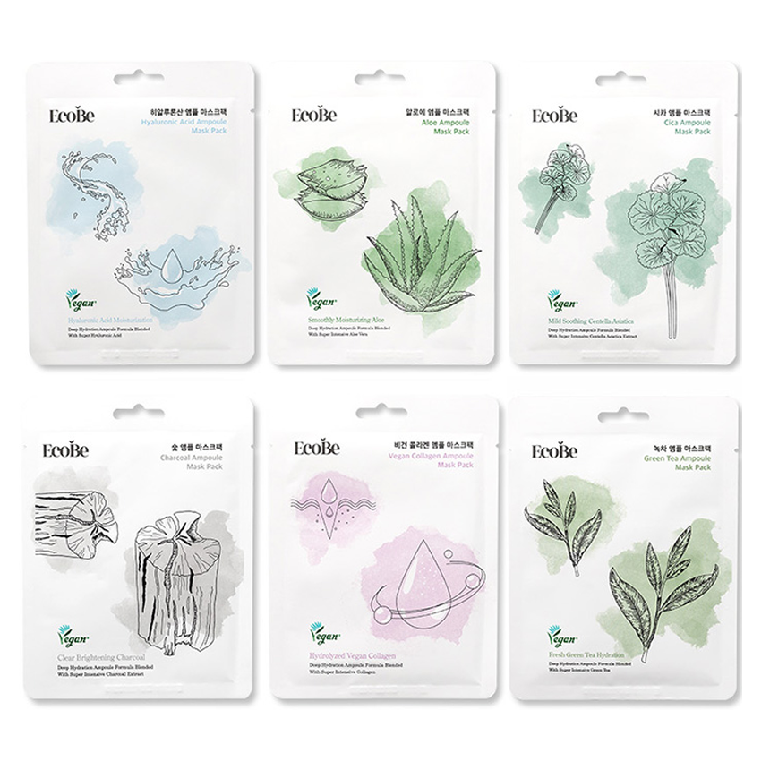Ecobe Vegane Ampullen-Gesichtsmaske, Sortenmix (6er-Set)